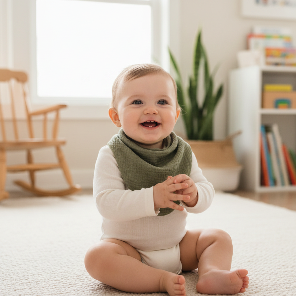 Il Bavetto bandana in mussola è l'accessorio baby perfetto che unisce funzionalità e stile. Realizzato in morbida mussola di cotone organico, protegge i vestitini del bambino con un tocco trendy e moderno.