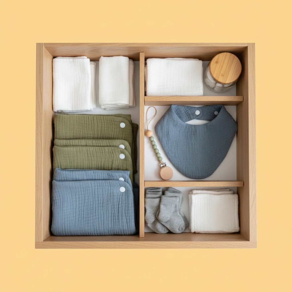 La mussola è un tessuto naturale, leggero e traspirante, perfetto per la pelle delicata dei neonati. Il cotone organico garantisce morbidezza, comfort e rispetto per l'ambiente.