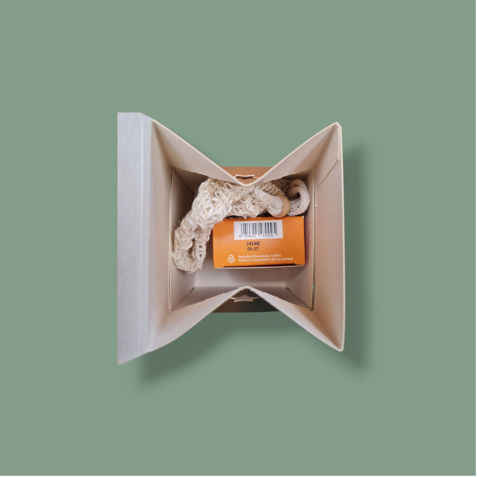 La combo perfetta per una pelle vellutata che profuma di dolcetti natalizi! Inserisci il bio sapone arancia e cannella nella tasca della spugna doppio uso, inumidiscila e passala sul corpo per detergere ed esfoliare con una sola passata.
