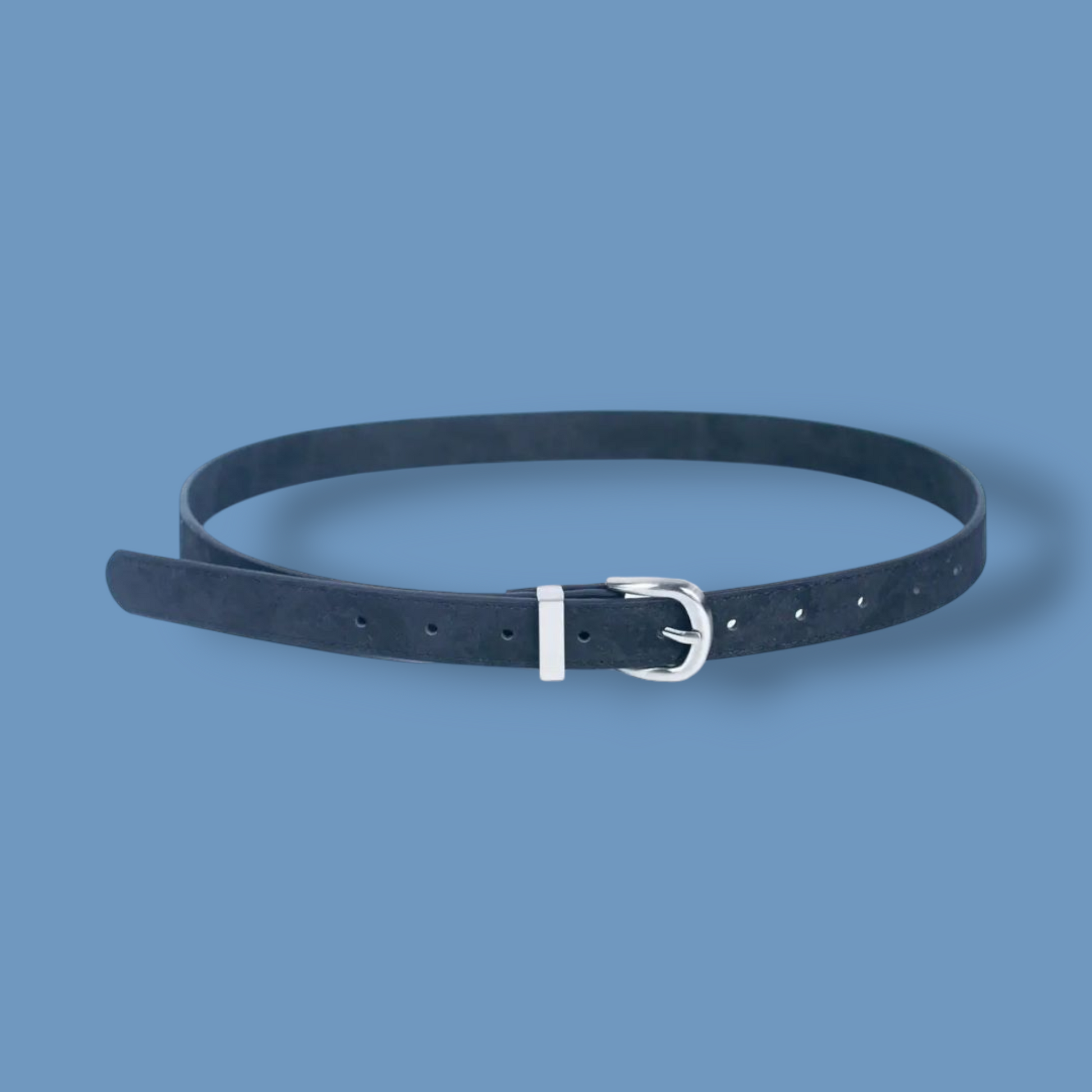 Questa straordinaria cintura in sughero è progettata con entrambi i lati decorati in sughero, che mostra la consistenza e la sostenibilità uniche del materiale. La cintura presenta un'elegante fibbia a semicerchio argentata che aggiunge un tocco di eleganza al tuo completo.