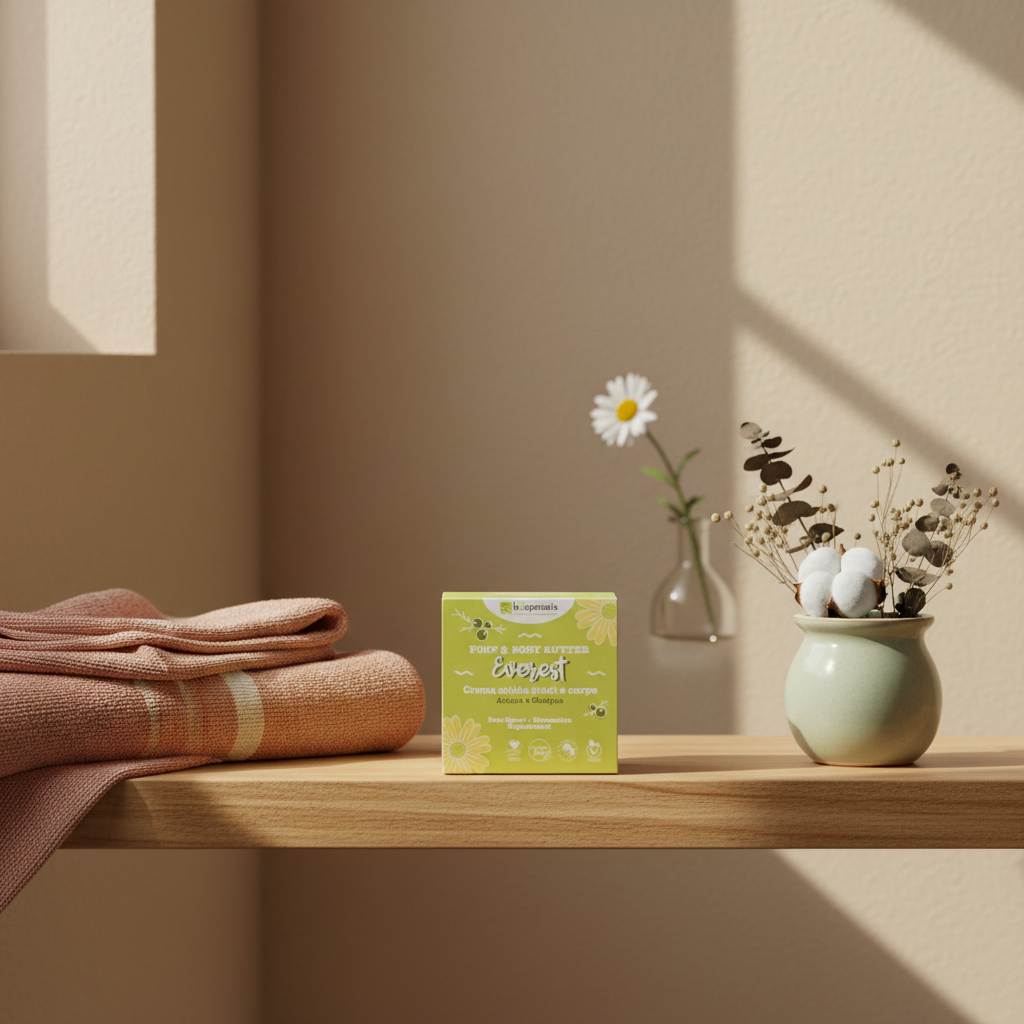 Freschezza rinfrescante per piedi e gambe affaticate. La Crema Solida Everest è un trattamento defaticante e nutriente in formato solido pratico, perfetto per rinfrescare e rivitalizzare piedi stanchi e gambe pesanti. Zero plastica, massima efficacia.