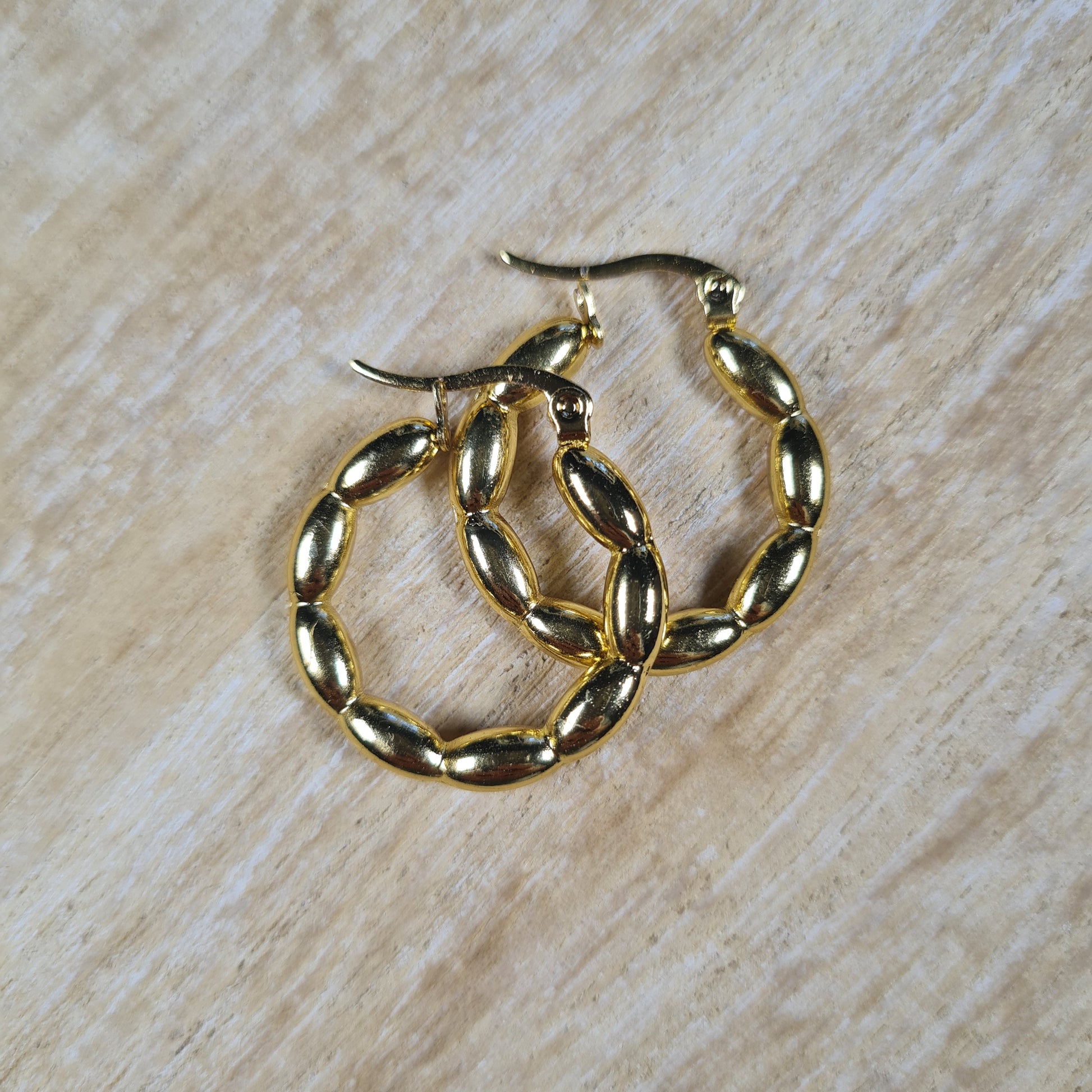 La scelta dell’acciaio inox, un materiale riciclabile e durevole, riduce l’impatto ambientale rispetto ai metalli tradizionali, sottolineando un impegno verso un consumo più responsabile. Il design sobrio e sofisticato di questi orecchini dorati valorizza ogni outfit, dal più formale al casual chic, conferendo un tocco di luce e personalità senza rinunciare alla sostenibilità. Perfetti per chi desidera un accessorio versatile, sono anallergici e adatti anche alle pelli più sensibili, combinando comfort e stile in modo impeccabile.